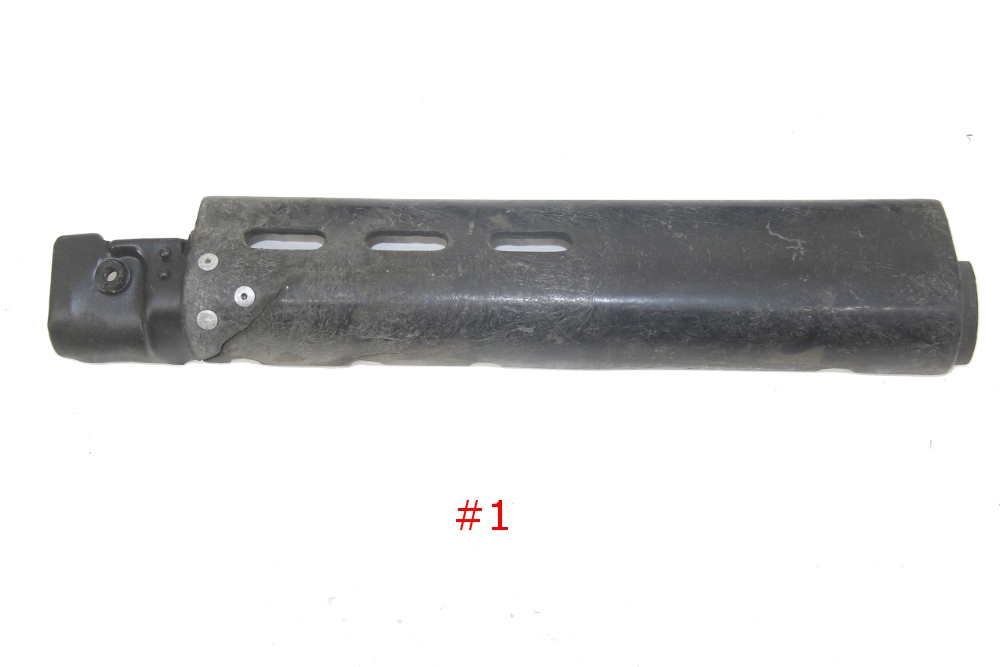 FN non bipod cut handguard. fiberglass cracked at junction to metal portion and reinforced with aluminum rivets. LEFT SIDE ONLY