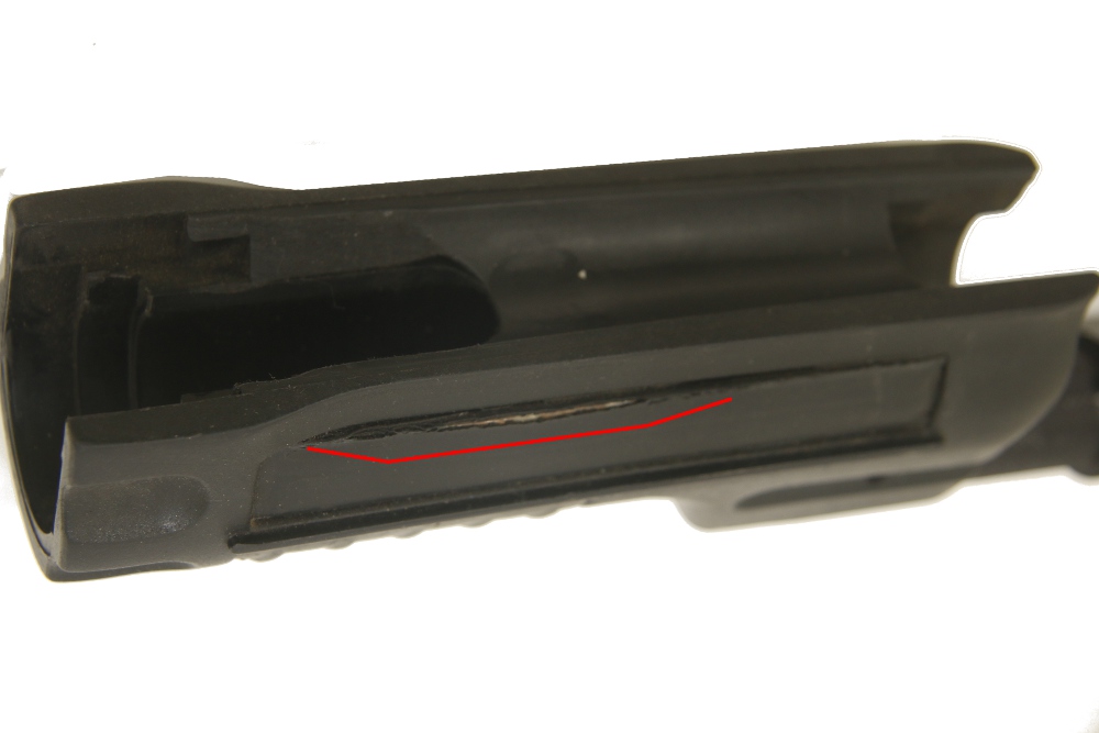 Used MP5 Surefire forearm. Small dent on front edge of bezel. Rubber worn on pressure switch side edges (can cover with electrical tape if desired.