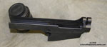 Closeup, outside magazine well. The slightest shadow can be seen here indicating an area on the original mold that was plugged. I speculate that it could be an early location for the manufacturing markings. The finish work on the outside of the magazine well is a little rougher, showing marks from a 36 or 60 grit sanding wheel.