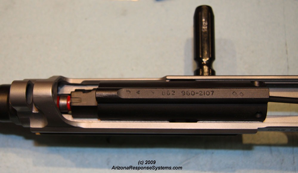 The first receiver came with a dark gray manganese phosphate finish. I found that removing the phosphate finish and using a fine bead-blast made it easier to photograph different aspects for my long discussions with Matt at EAI. After mentioning this to EAI, I received subsequent receivers in the white, and bead-blasted them to accentuate the detail. Receivers shipped to the customer will be phosphated.