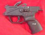 Like the S-E-F group above, notice the paint lettering on the German is more precise than the POF group. The 4-position German is an MP-5K PDW/SP89 group; the POF is an MP5 unit. the paint in the lettering is wider and less neatly done than the German. The grain texture on the selector is slightly coarser than the German, but I had to have both together to tell which was which. The German 4-position has two pins through the hollow rear side of the trigger, the POF does not: it has the same style trigger as the German S-E-