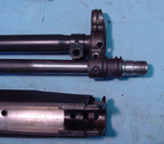Non-tapered cocking tubes are incompatible with wide handguards because they do not have a hanger for the front of the handguard may attach. I make hangers from scratch, using a small piece of angle iron and a small pice of steel tubing