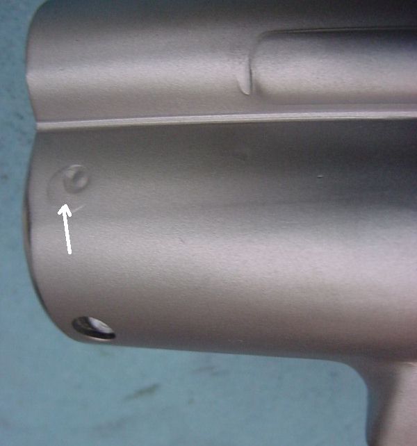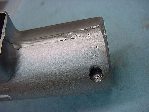 After dressing down, I am not too happy with this weld. while totally functional,. it is not visible enough – it is too smooth. I will go back over it with the TIG and “draw” a circle of molten metal . Note how I chamfered the front of the receiver.